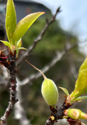 そして美しい花が終わったと思った間もなく実をつけ始めたアンズです。
