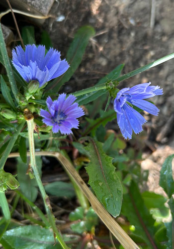 かと思えば、まったく地表から消えていたのにいつのまに茎だけが伸びてきて3日前から咲き始めたチコリ。