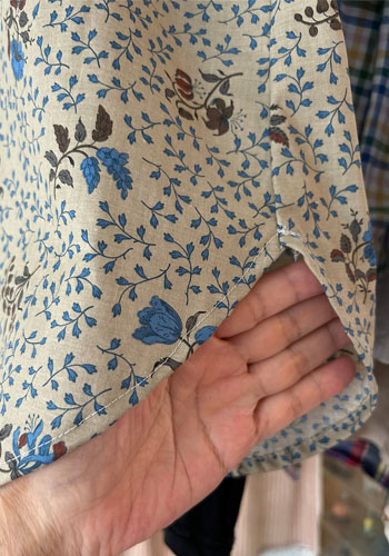 後ろはヨークの縫い目利用のループ止めやワイシャツの様な丸みのある裾など、ちょっとしたこだわりがシンプルなブラウスのアクセントになっています。