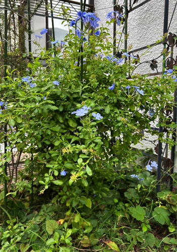 真夏の暑い時に水色の花は眺めるだけで癒されます。なのにウチは咲かない…。