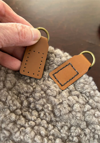 これを2枚縫い合わせて革のタグをつけたり