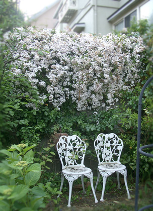 今年も借景のお隣さんのジャスミンが満開になりました。ジャスミンのように南国の花は夜に香りが強く漂います。
