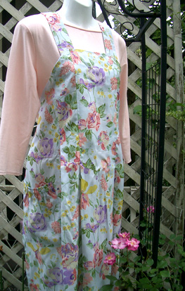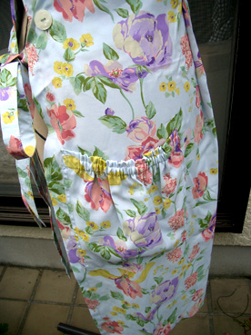 これは肩紐をクロスさせたエプロン。紐をうんと幅広にしてクロスするので肩が懲りません。私自身、肩凝り症なのでエプロンはまず肩紐を確かめます。