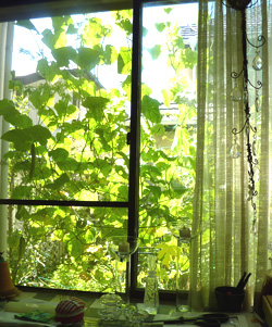 緑のカーテン見事ですね。見た目も涼しくそのうえ新鮮なきゅうりが食べられるなんて楽しい