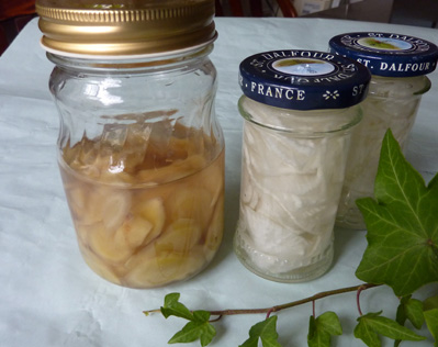 たいがいは温かい飲み物で治ってしまうことが多いので、のどに良いとされる「だいこんシロップ」と「しょうがシロップ」を作りました。