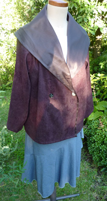 エンジ色のコートは1枚仕立てのふわっと羽折るコートです。