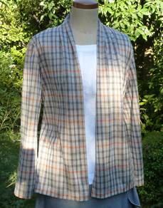 素材は綿ニットですがきちんとした感じにも着られて便利なカーデガンだと思います。衿を軽く折って着ます。両前には模様に合わせてポケットもつけました。