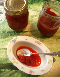 さらに残った実は砂糖で煮ました。ヨーグルトやデザートにすぐ使えるように1/3の量の砂糖でアクを取りながら煮ます。ベリー類はそのまま冷凍も出来るのですが,今回は丁寧に種を取って煮たのでちょっと上等かな。砂糖が少なめで痛みやすいので冷凍庫で保存します。