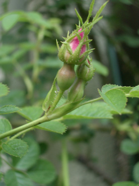 もうつぼみの頃からバラのヒップ(おしり)が膨らみ始めます。