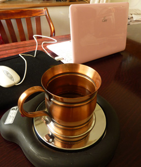 先日買ったティーポットに付いていた、保温プレート。