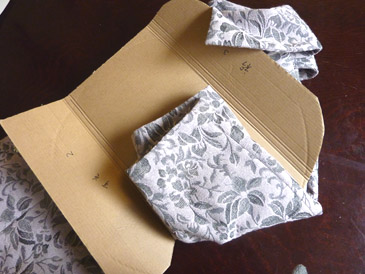 ジャケットを半分に折り、ダンボールをのせます。
