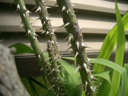 でもこのバラのいいところは、虫がほとんどつかなくて、葉っぱが青々ときれいに茂るのです。そして「野いばら」というだけあって棘がすごい。